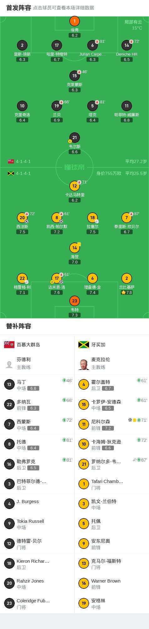 第26分钟,牙买加球员格雷格-利助攻西法斯打入一球。