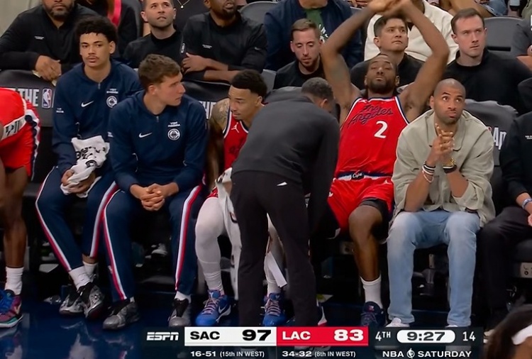 GG克-伤不起啊!伦纳德防守时又被撞到&一瘸一拐 已确定退赛!